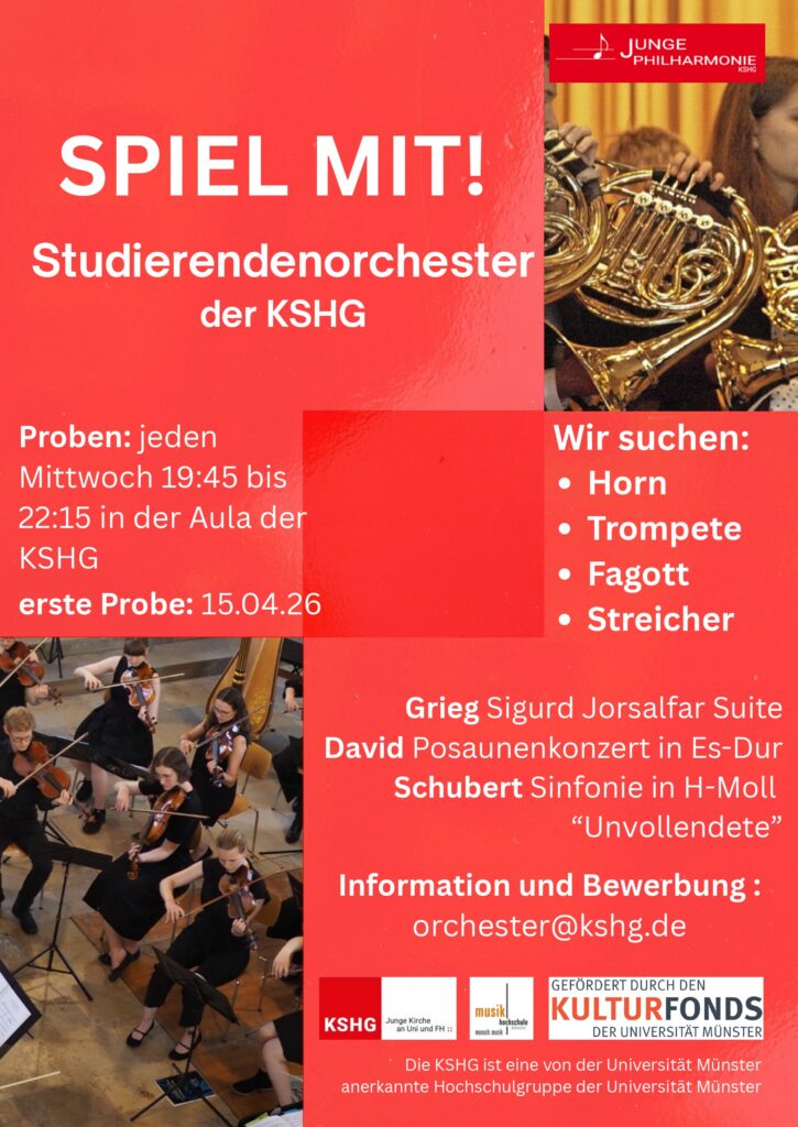 Das Mitspielen im Orchester richtet sich an Studierende. Bei Rückfragen meldet euch unter: orchester@kshg.de.